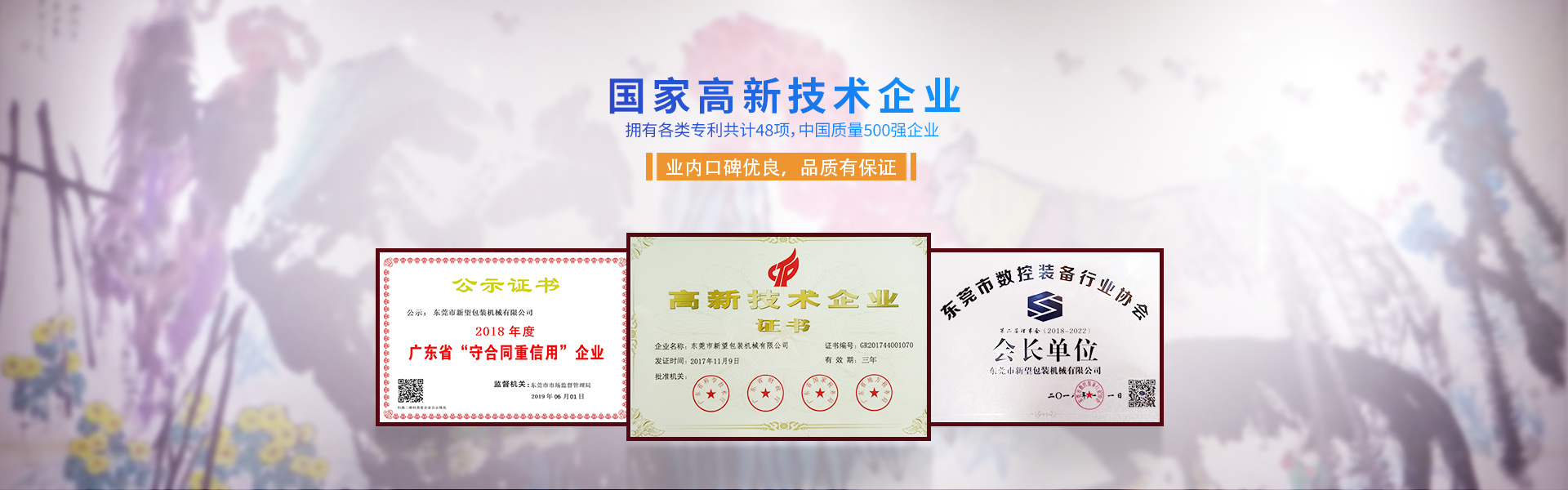 新望機(jī)械成立于1998年,位于東莞市東部工業(yè)園區(qū)的中心地帶——企石鎮(zhèn)東平村,交通方便、環(huán)境優(yōu)美舒適、視野開闊。公司注冊資本2000萬元,擁有辦公室、廠房等18,000多平方米。已通過ISO9001:2015國際質(zhì)量管理體系認(rèn)證,擁有國家各類專利共計(jì)58項(xiàng)。是東莞市企石鎮(zhèn)工商聯(lián)副會長單位、東莞市企石鎮(zhèn)文學(xué)藝術(shù)界聯(lián)合會副主席單位、東莞市環(huán)保包裝行業(yè)協(xié)會副會長單位、東莞市數(shù)控裝備行業(yè)協(xié)會第二屆會長單位、廣東省包裝技術(shù)協(xié)會常務(wù)理事單位、廣東省膠粘劑行業(yè)協(xié)會理事單位、廣東省著名商標(biāo)企業(yè)、國家高新技術(shù)企業(yè)。